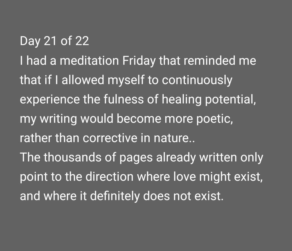 After I have identified my own internalized issues, and have become willing to heal from them, I could just as easily say “I am no longer traveling old paths of consciousness”, and then through mindfulness and meditation, STOP, or at least dramatically reduce, thinking time-based thoughts, and rehashing and rehearsing painful old memories, to create a new life experience for myself. I would then have to trust in my innate capacity to heal and change, or in spiritual terms, a “Higher Power”, “the Unknown”, the “Present Moment”, and/or “the Mystery” to create my new “timeless self” in each moment.