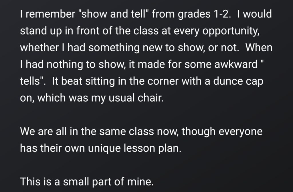 I am 69 years old, and I am a retired person. I began writing in 2016. Since 2016 readers have shown they are not interested in my writings, other than my wife, best friend, and one beautiful recovering woman, gracefuladdict. l I still write anyway.