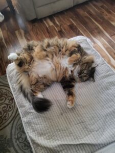 Yet when I arrived at my new home, I was greeted by yet another furry little creature like my previous human companion had. Her name was Patches, and she seemed to rule the house. She would follow her human parents everywhere they went, and they called her their “puppy-cat”. I knew that it would take a some time to find where I fit in here. She was always sweet to me, but she was a little hard to get to know, because she talked a different language than all of us. I think that I could talk human a little better than she could, but since this family was new to me, I did not have a lot of confidence.