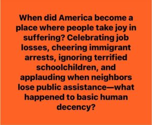 It is why Trump supporters often dismiss the pain of others. Whether it’s the impact on immigrants separated from their children, workers denied healthcare access, or climate refugees displaced by disasters many politicians refuse to address, the response is often glib indifference or outright contempt.