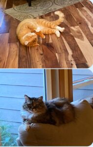 Felix is above, our feral neighborhood cat who recently claimed us as his own. Sassy is the cat on the bottom