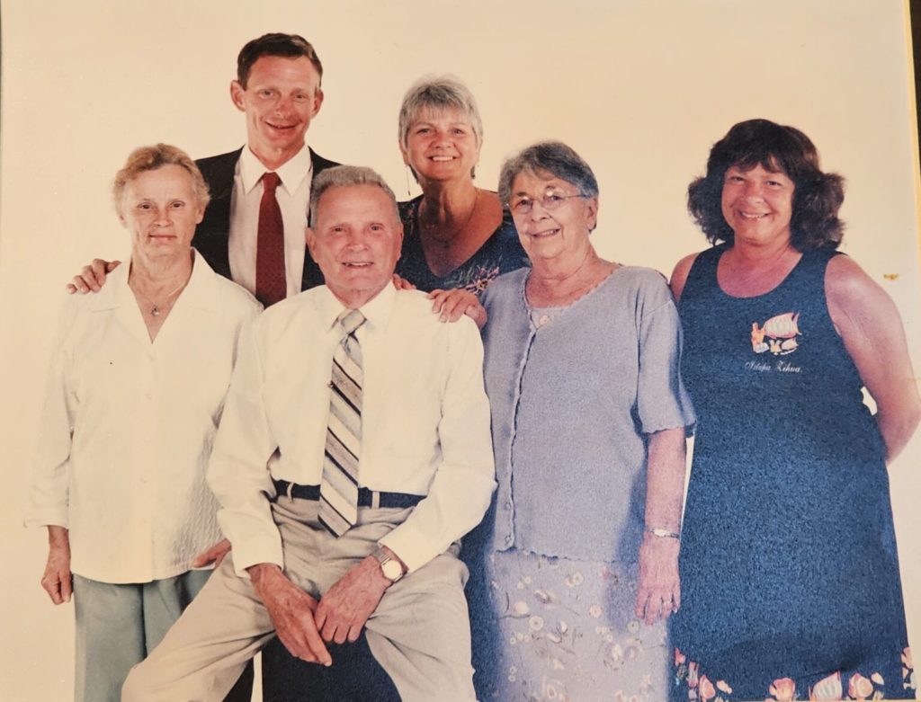 Aunt Susie, my father Beryl, my mother Corinne, my sister Pam in front, with my wife Sharon and me in back